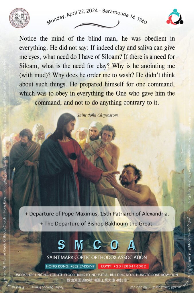 Monday, April 22, 2024 – Baramouda 14, 1740