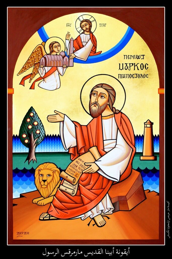 St. Mark was an African native of Jewish parents who belonged to the Levites’ tribe. His family lived in Cyrenaica until they were attacked by some barbarians, and lost their property. Consequently, they moved to Jerusalem with their child John Mark (Acts 12:12, 25; 15:37). Apparently, he was given a good education and became conversant in both Greek and Latin in addition to Hebrew. His family was highly religious and in close relationship with the Lord Jesus Christ. His cousin was St. Barnabas and his father’s cousin was St. Peter. His mother, Mary, played an important part in the early days of the Church in Jerusalem. Her upper room became the first Christian church in the world where the Lord Jesus Christ Himself instituted the Holy Eucharist (Mk 14:12-26). Also, this is the same place where the Lord appeared to the disciples after His resurrection and His Holy Spirit came upon them.